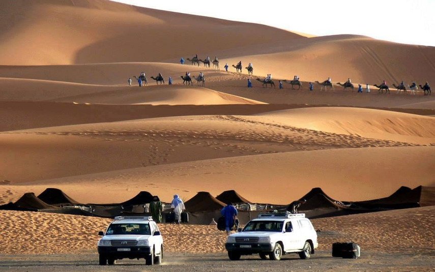 - Arrivée à Merzouga : coucher de soleil, dîner & nuit en bivouac de luxe